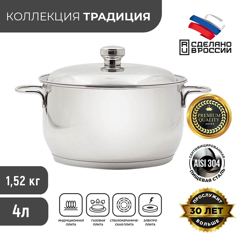 Кастрюля 4,0л "ТРАДИЦИЯ" ТРС прут.руч. 3с68 (4)