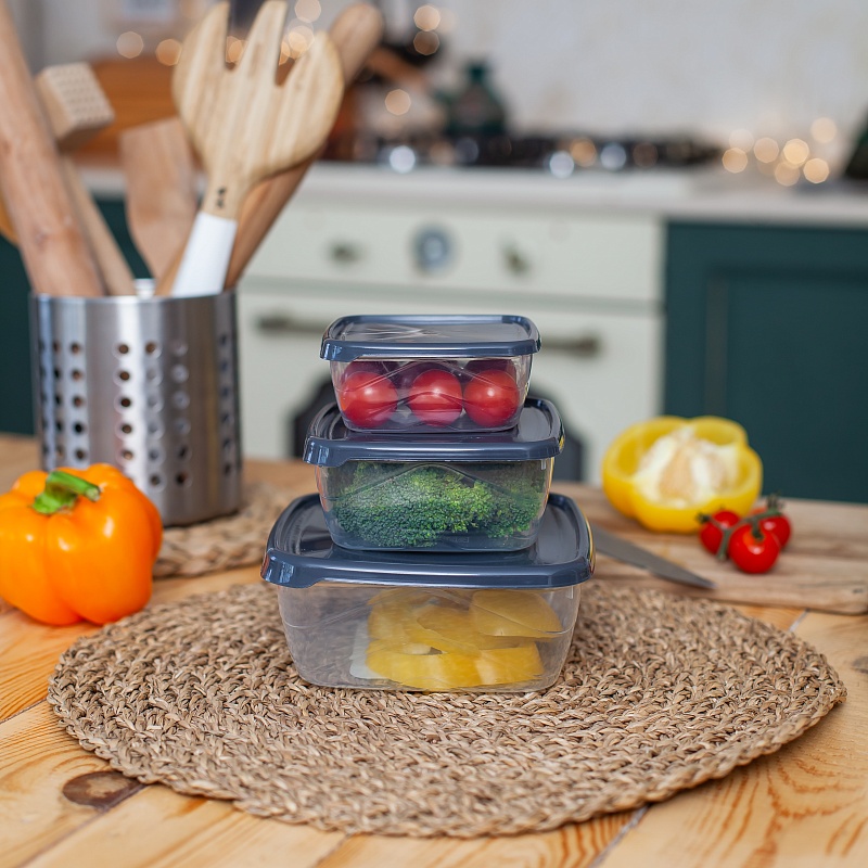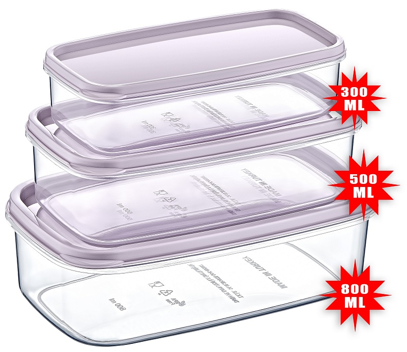 Набор контейнеров прямоугольных 3 шт (0,3л+0,5л+0,8л) прозрачный (24/1)