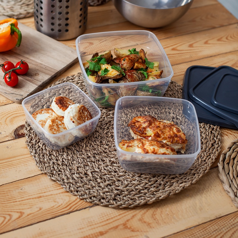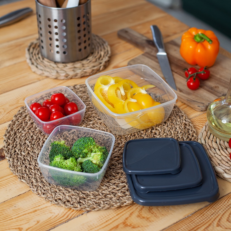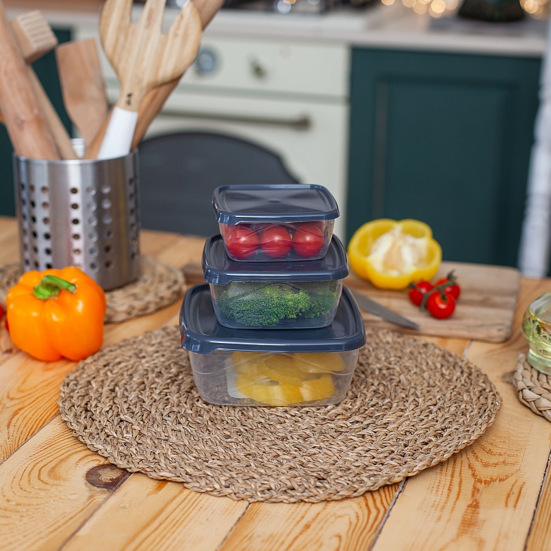 Набор контейнеров квадратных 3шт (0,25л+0,5л+0,9л) прозрачный (24/1)