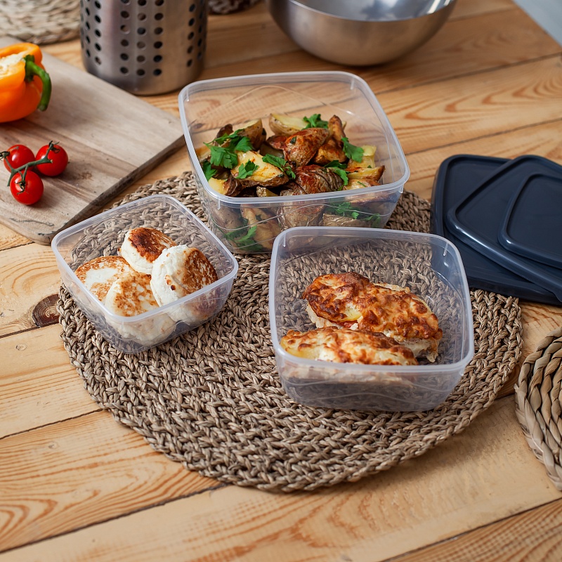 Набор контейнеров квадратных 3шт (0,5л+0,9л+1,5л) прозрачный (24/1)