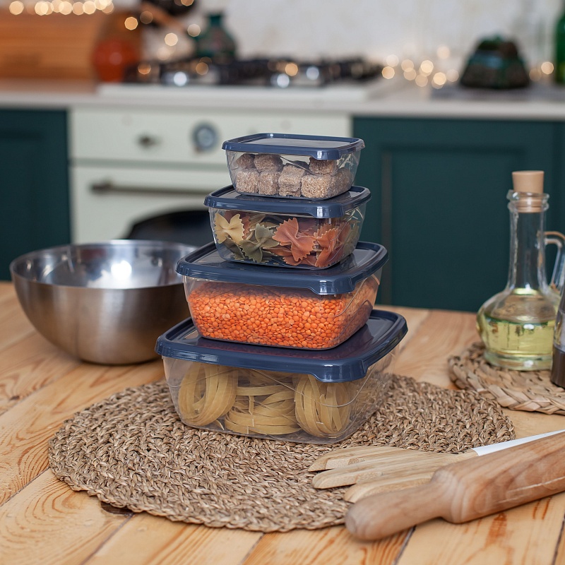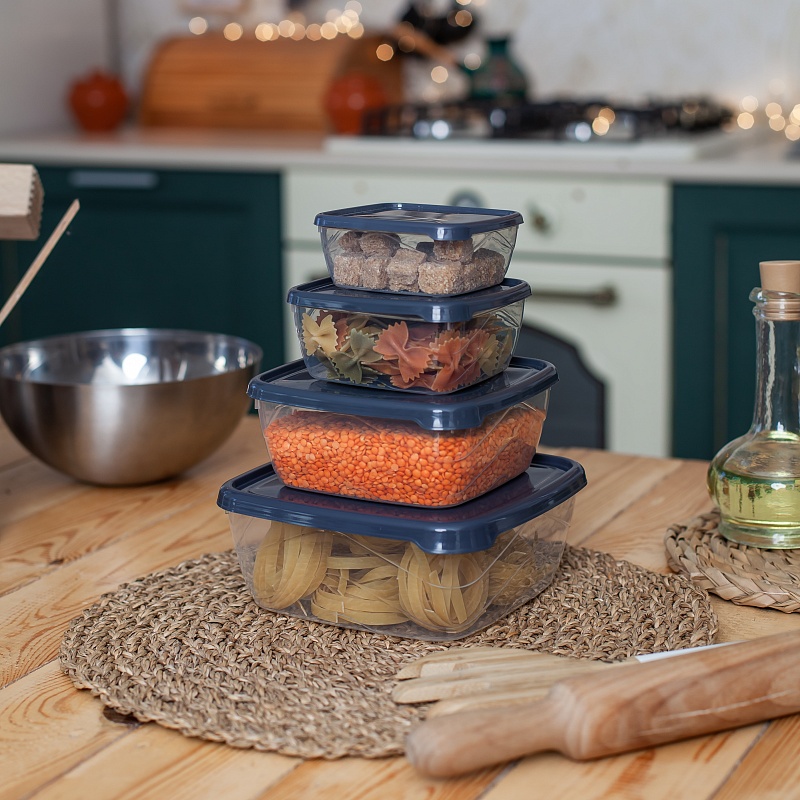 Набор контейнеров квадратных 4шт (0,25л+0,5л+0,9л+1,5л) прозрачный (24/1)Артикул: 103472В наличии231 ₽