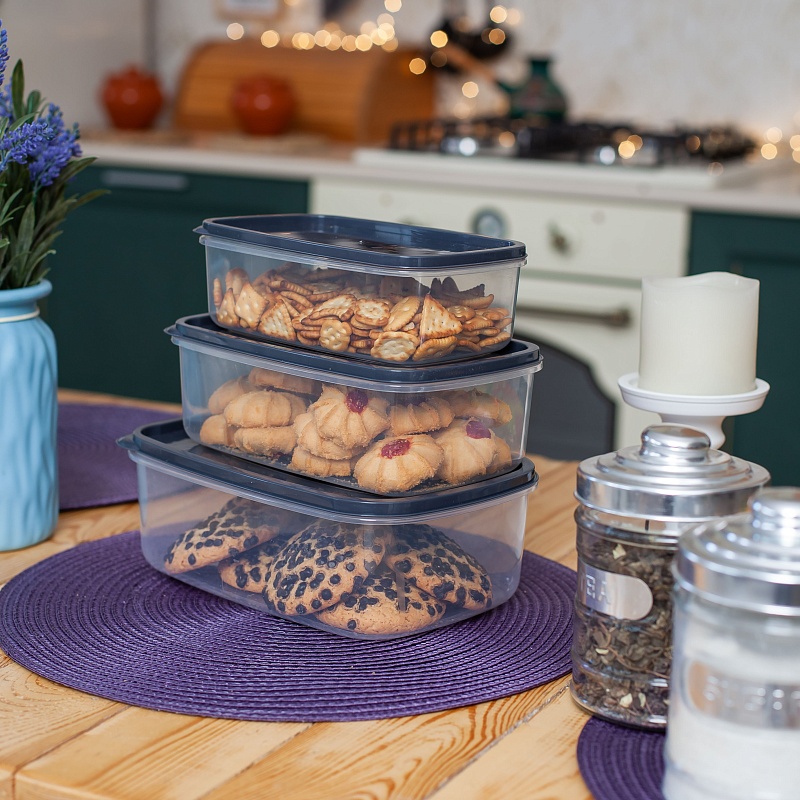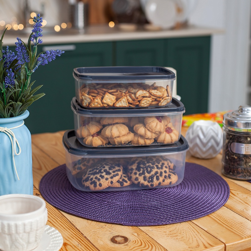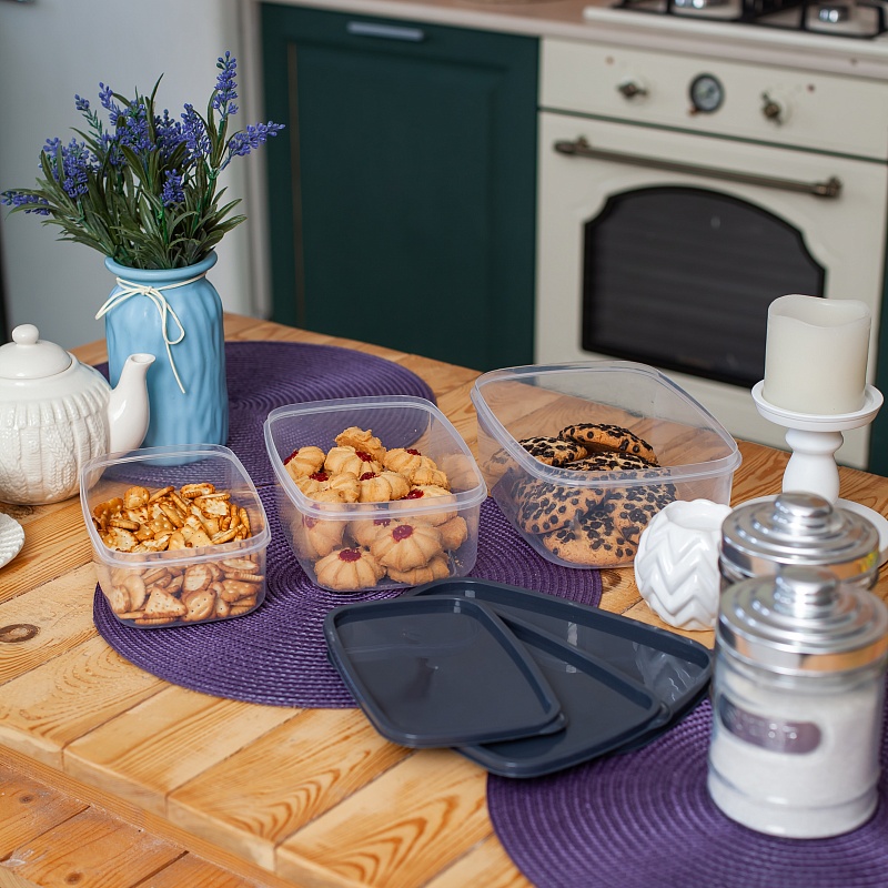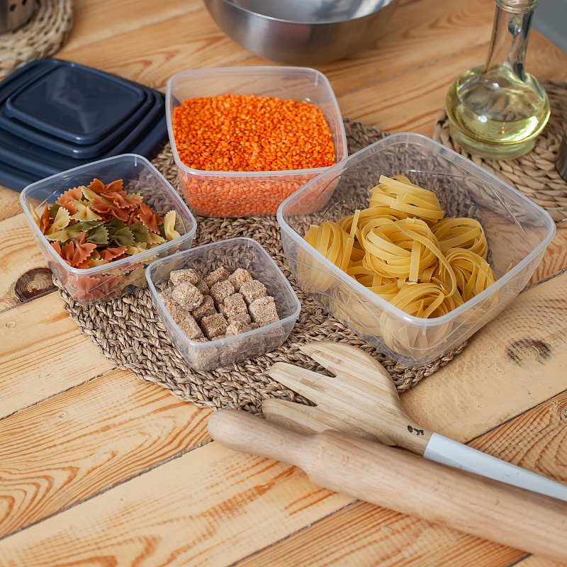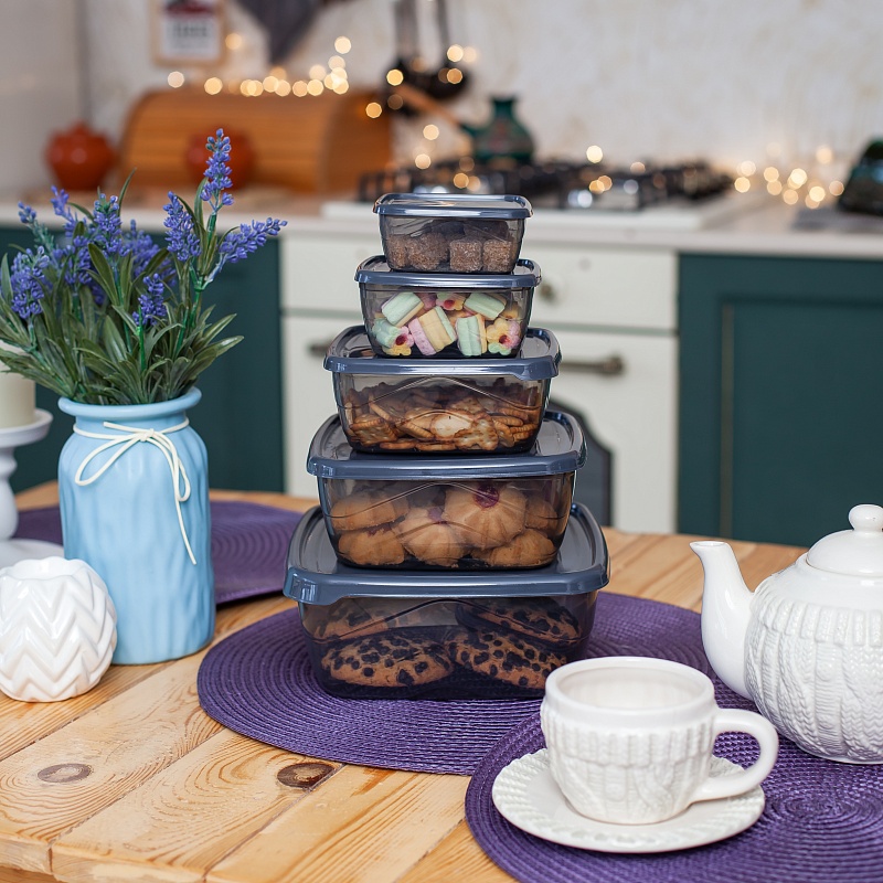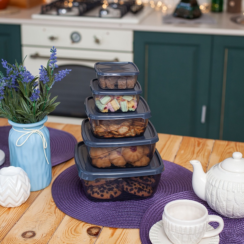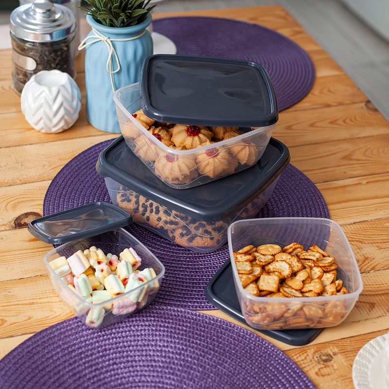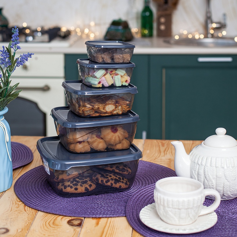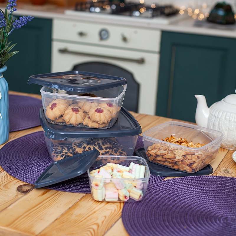 Набор контейнеров квадратных 5шт (0,25л+0,5л+0,9л+1,5л+2,5л) прозрачный (24/1)Артикул: 103475В наличии456 ₽