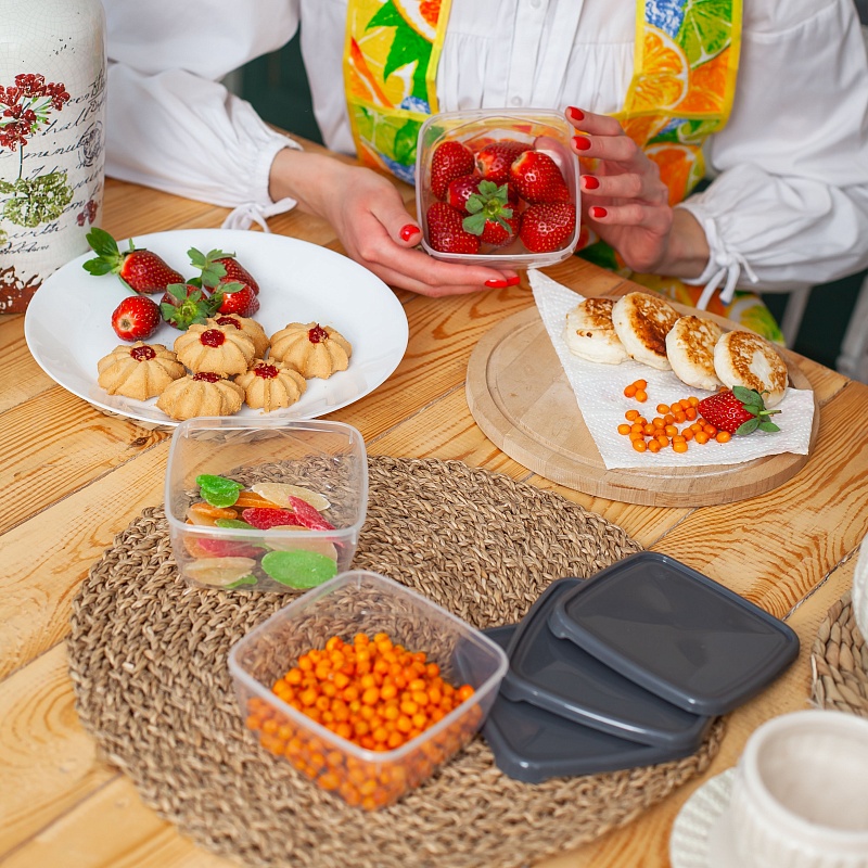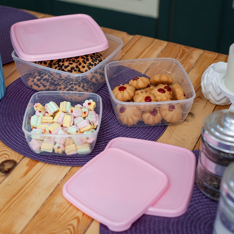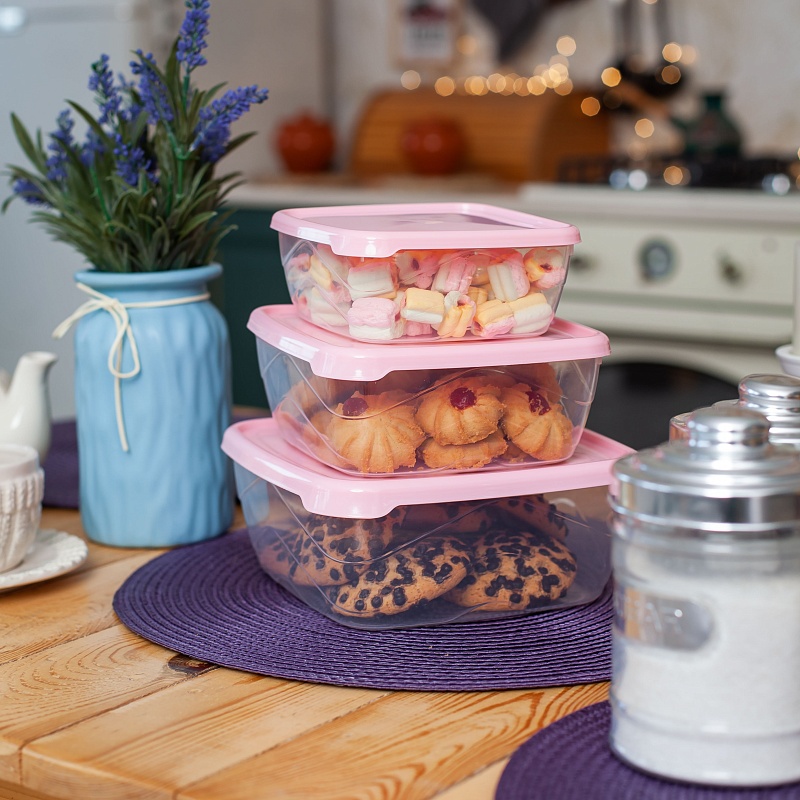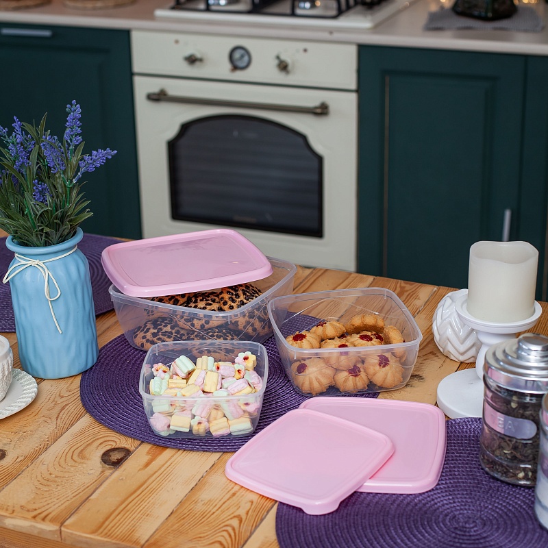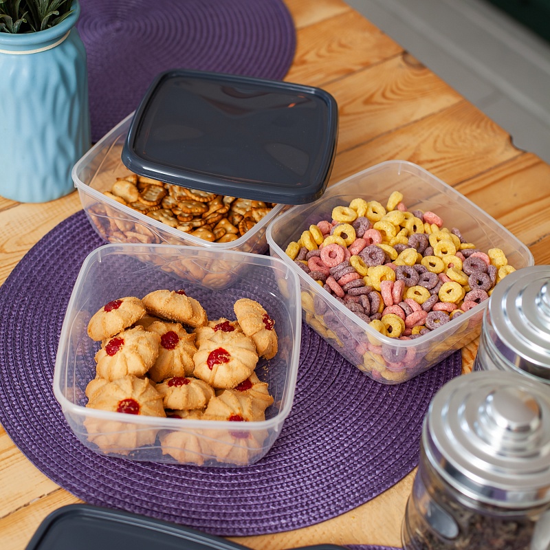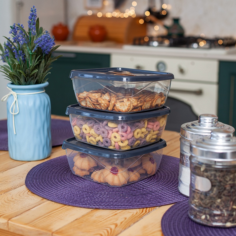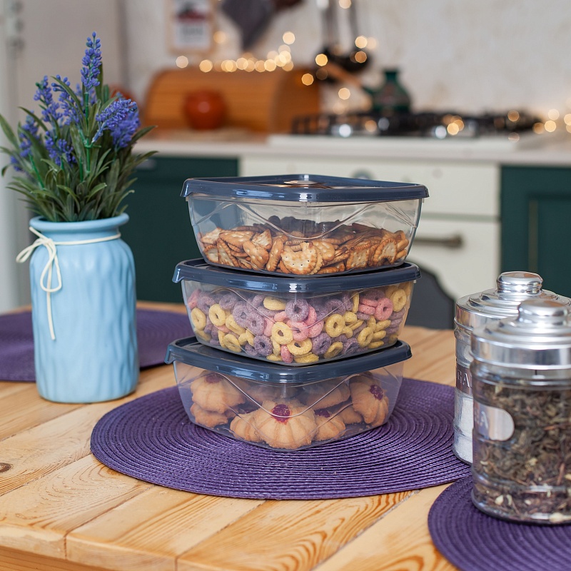 Набор контейнеров квадратных 3шт (0,9л+1,5л+2,5л) прозрачный (24/1)