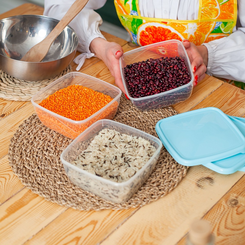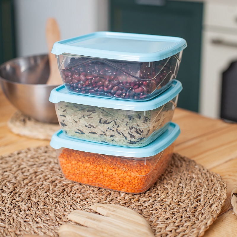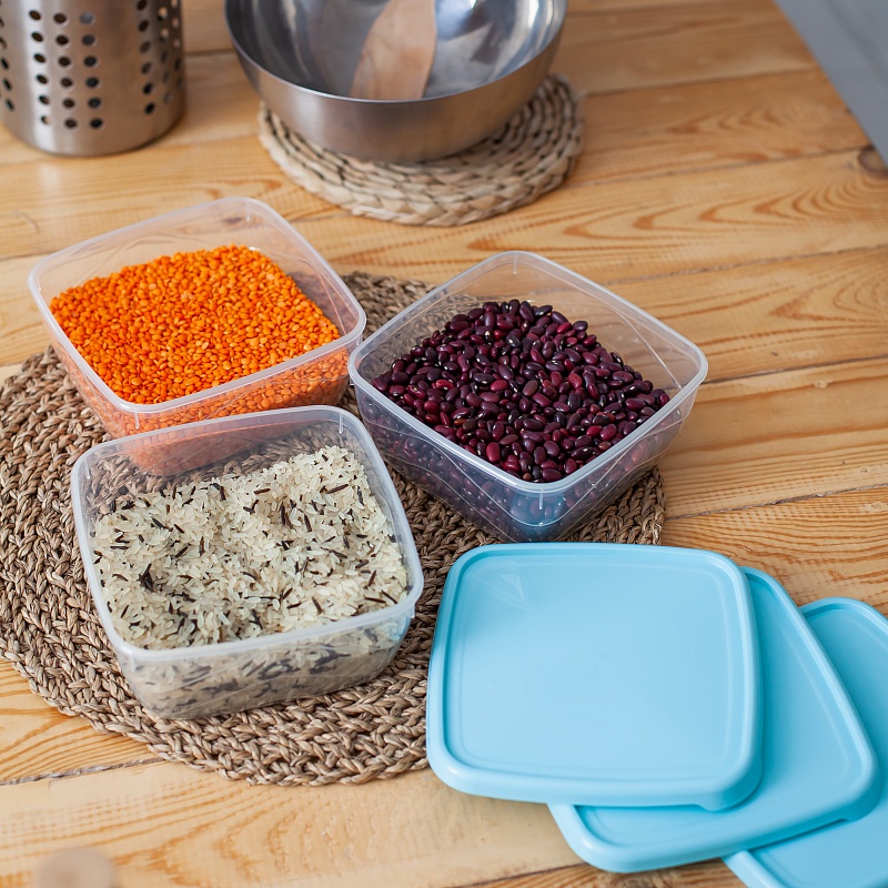 Набор контейнеров квадратных 0,9л (3 шт) прозрачный (24/1)