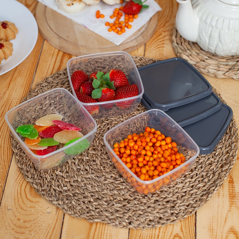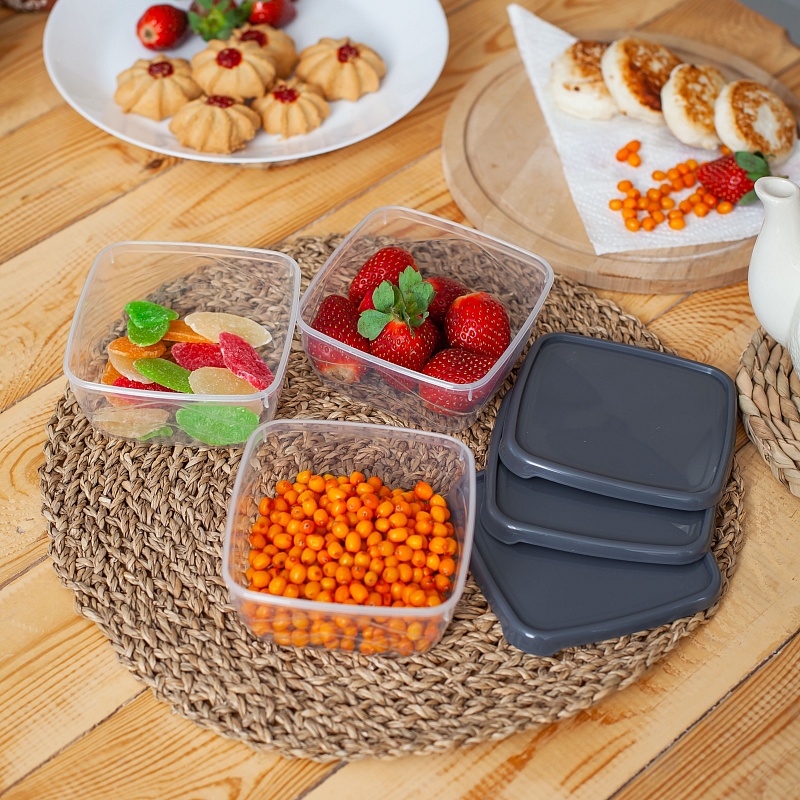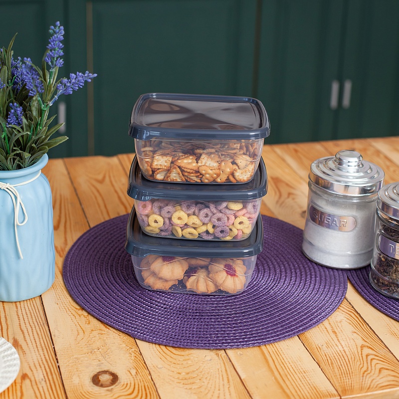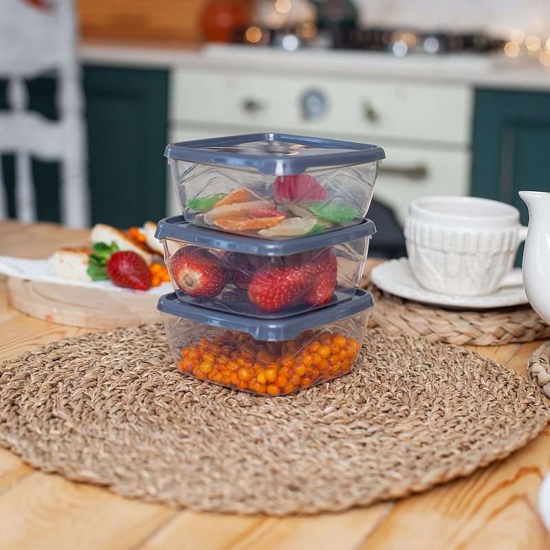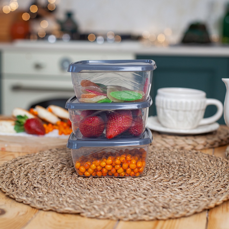 Набор контейнеров квадратных 0,5л (3 шт) прозрачный (24/1)