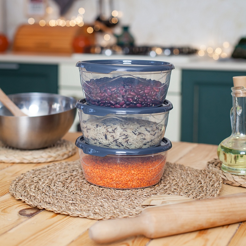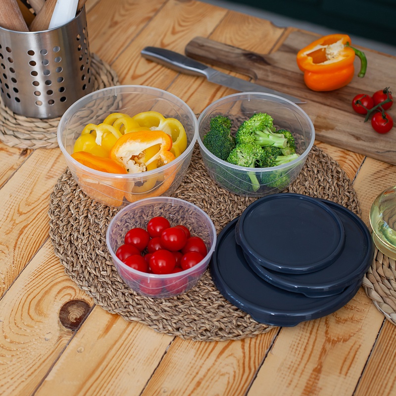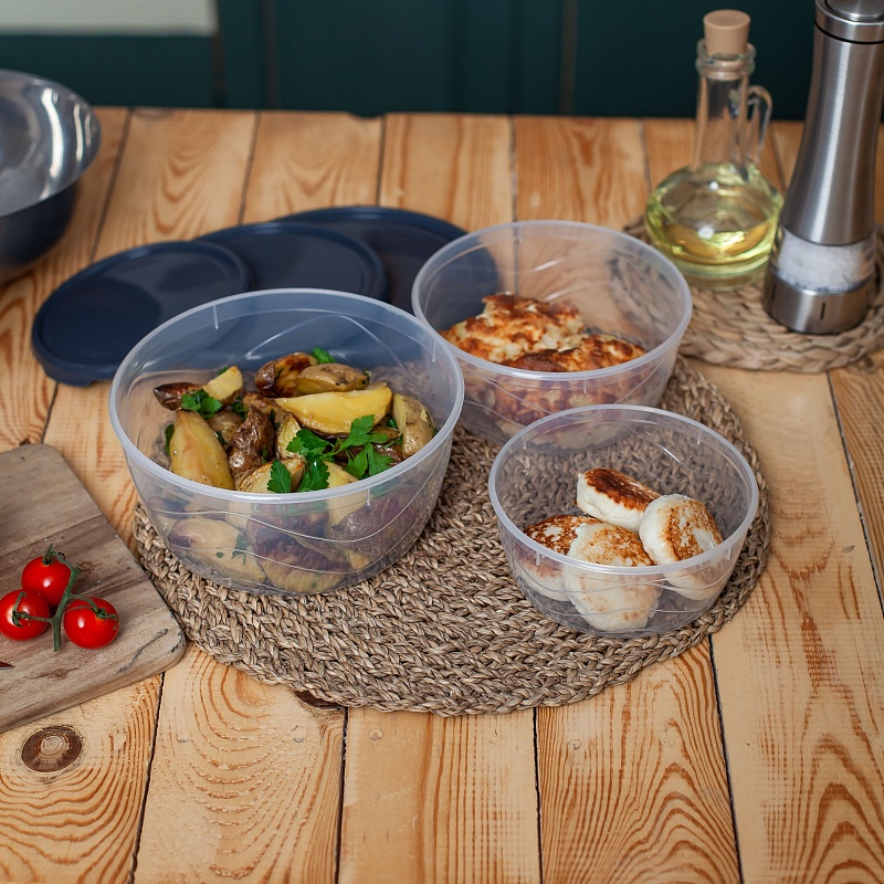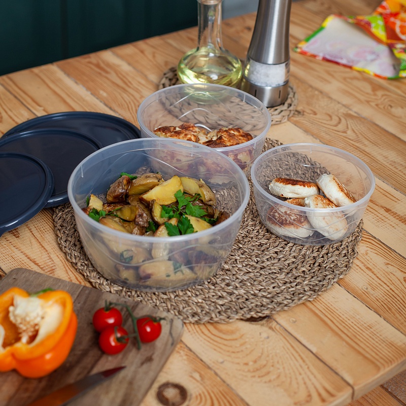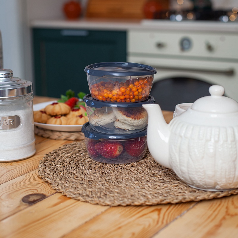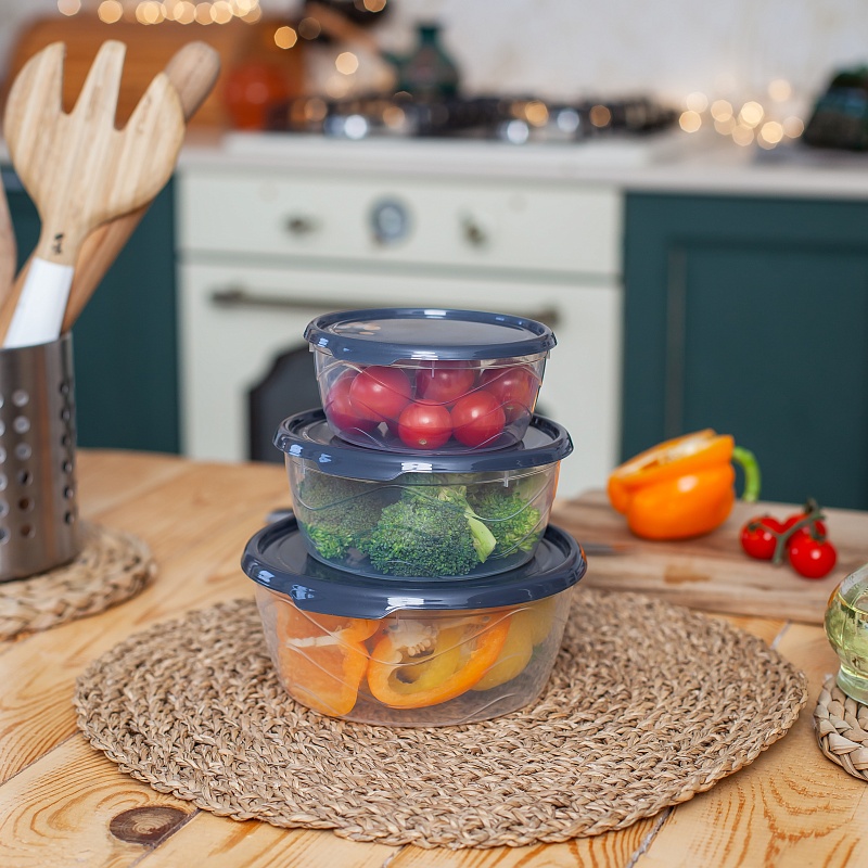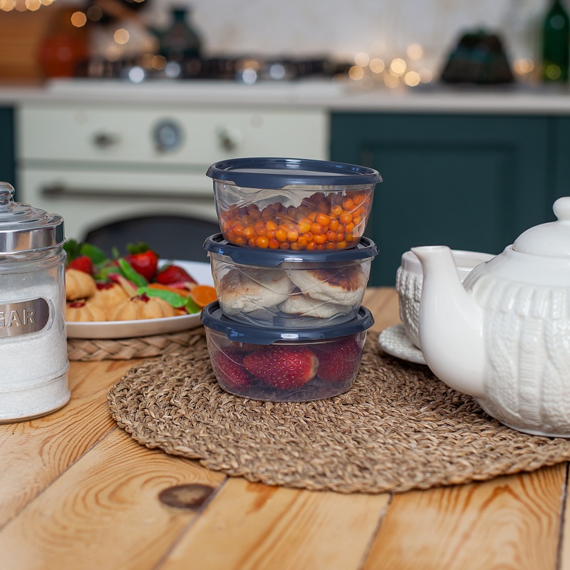 Набор контейнеров круглых 3шт (0,3л+0,7л+1,1л) прозрачный (24/1)