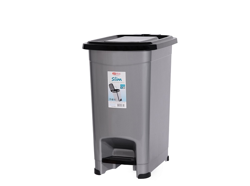 НовинкаКонтейнер для мусора с педалью "Slim" 15л темно-серый/черный 558 (6/1)Артикул: 121621В наличии698 ₽