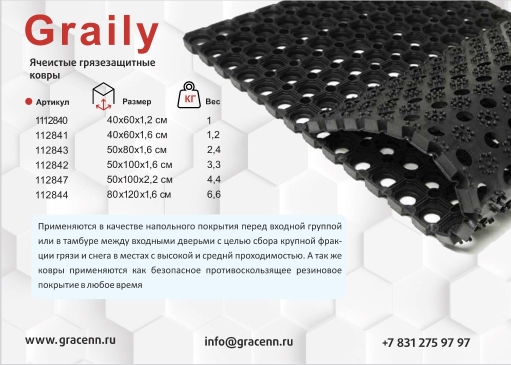 Коврик ячеистый грязесборный 50х100х1.6 см GRAILY (5/1) пр-во Россия