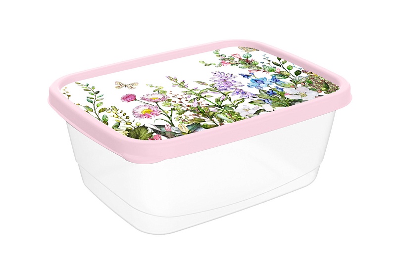 НовинкаКонтейнер для продуктов прямоугольный 0,85л с декором Цветущий луг светло-розовый 223110907/01 (20/1)Артикул: 119198Нет в наличии76 ₽