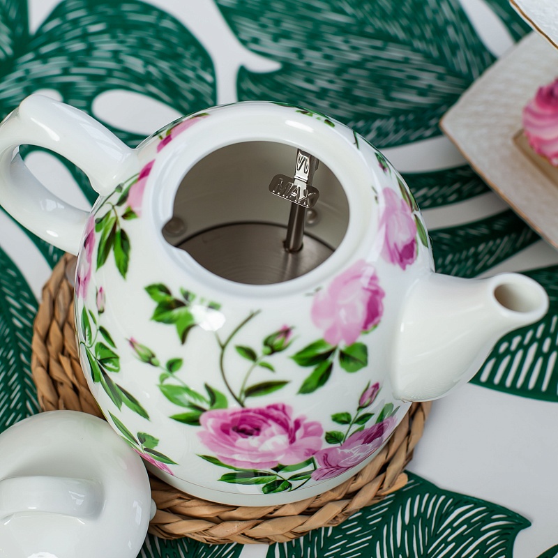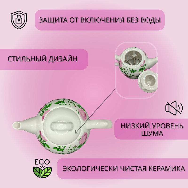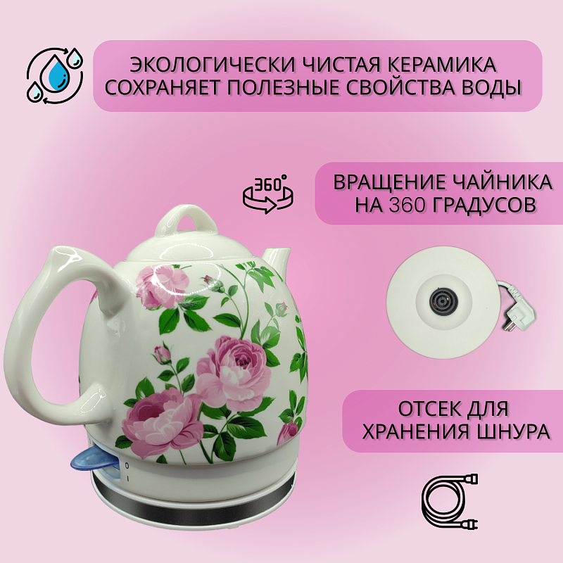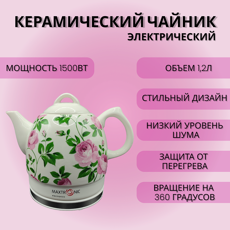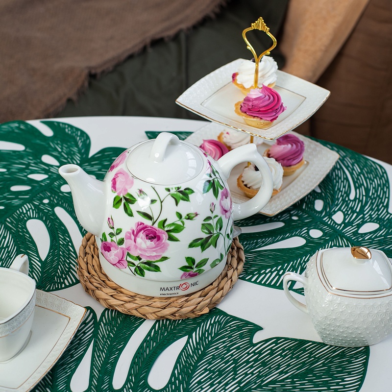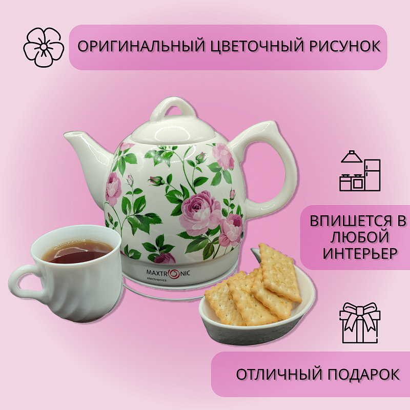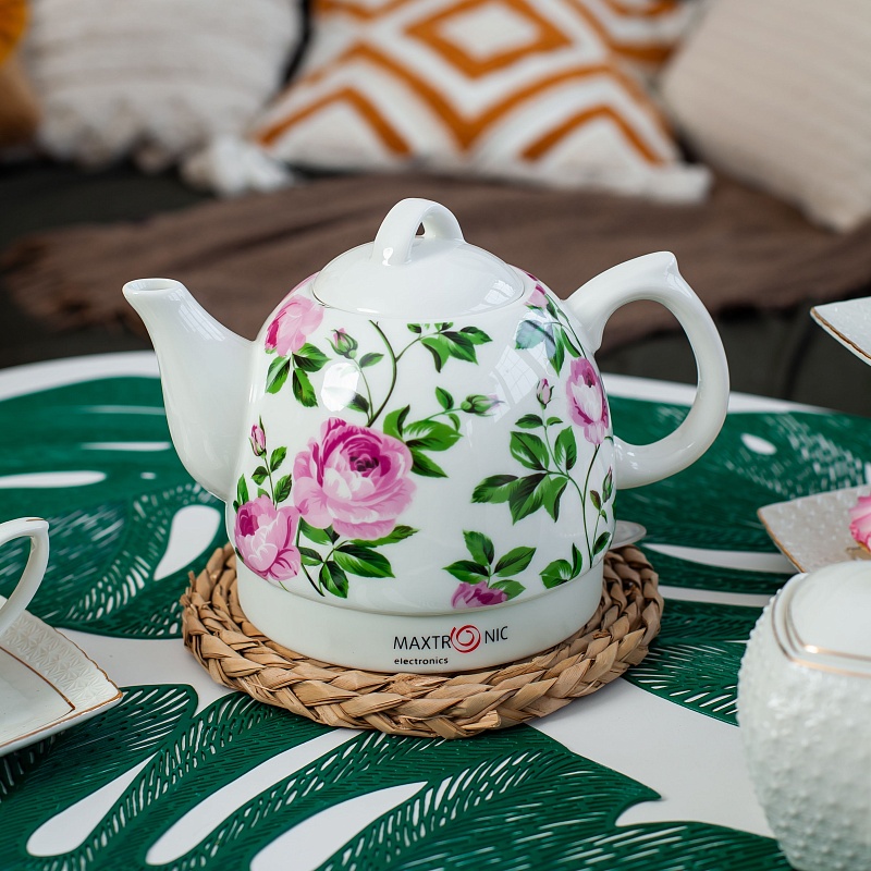 Чайник MAXTRONIC MAX-YD-181 Розовая роза c листьями (8)