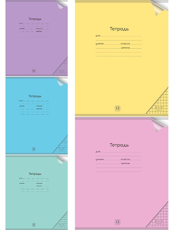 Тетрадь КЛЕТКА 12л. ПАСТЕЛЬ ассорти 5 цветов
