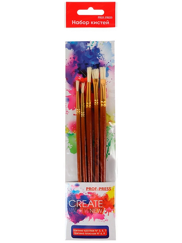 Набор кистей (щетина круг.№3,5,7; щетина плоская №4,9) (НК-2814) 5 шт.