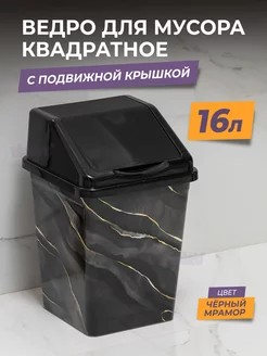 Контейнер для мусора 16л черный мрамор 941618 (14/1)