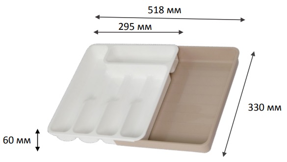 Лоток д/столовых приборов 330*295/518*60мм раздвижной белый/латте 740620 (10/1)Артикул: 104004В наличии312 ₽