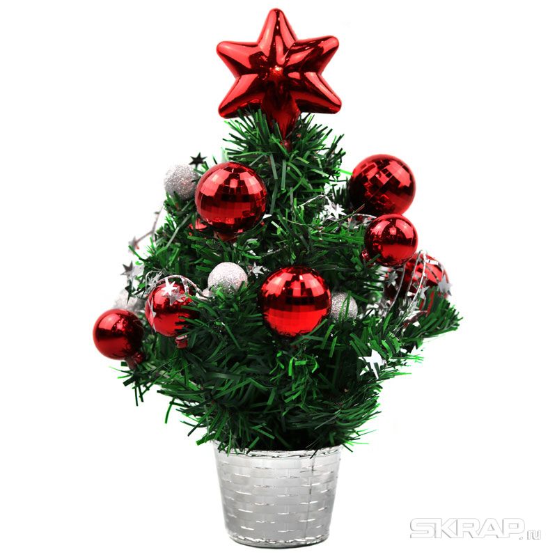 Елка декорированная 30см с красными украшениями 003264 (100/1)