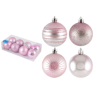 Елочное украшение ШАРЫ Розовые 6см 8шт с рисунком 003376 (80/1)