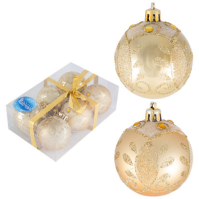 Елочное украшение ШАРЫ Зимний 6см 6шт золотой 007487 (36/1)