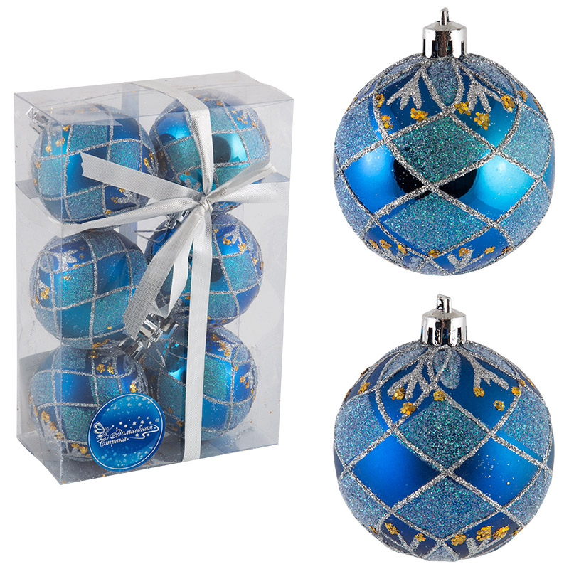 Елочное украшение ШАРЫ Ажур 6см 6шт синий 007488 (36/1)