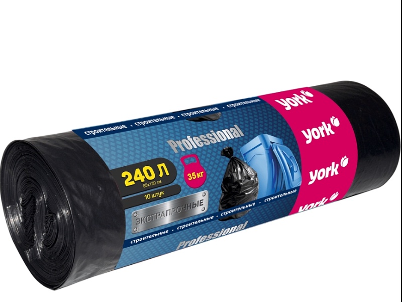 Мешки строительные экстра прочные YORK 60 мкм 240л (10шт.) 090070 (8/1)
