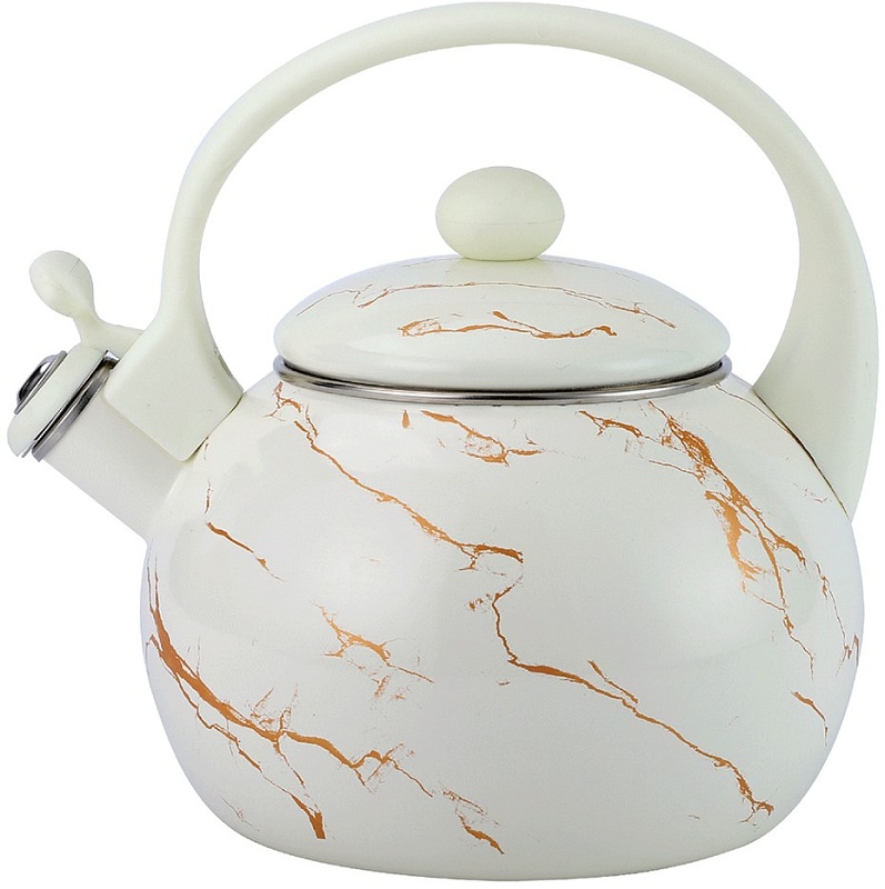 НовинкаЧайник со свистком 2,5 л эмалированная сталь бакелитовая ручка наружное покрытие - эмаль с рисунком Подходит для индукции Z-4559 White marble (6/1)Артикул: 123404Нет в наличии1 064 ₽