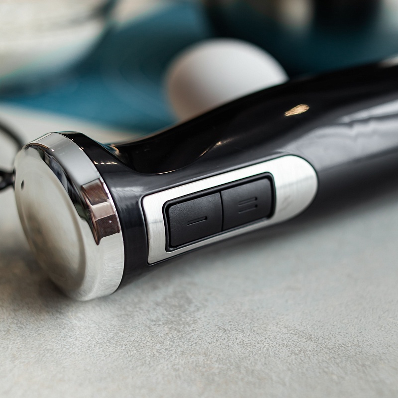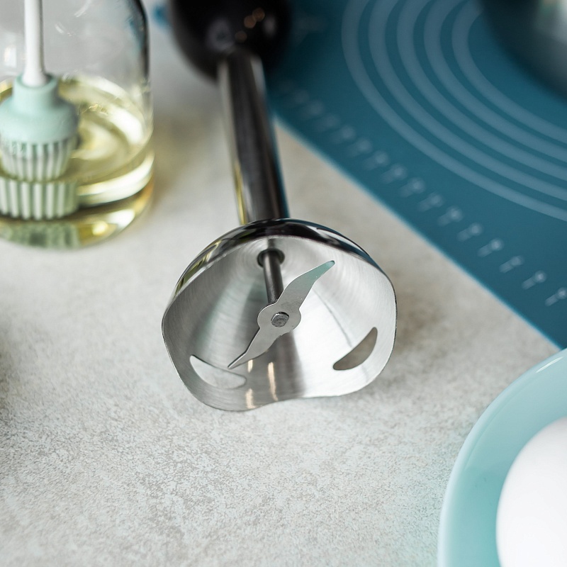 Надежный и удобный блендер поможет вам готовить ваши любимые блюда с минимальными затратами времени. Благодаря компактным размерам и простой конструкции блендер всегда будет под рукой и готов к работе. Идеально подходит для измельчения мяса, сыра, овощей, фруктов и трав, а также для взбивания сливок, соусов и смузи. Стильный дизайн идеально впишется в современный интерьер. В комплект входят: моторный блок с корпусом из черного пластика с серебристыми вставками, погружная часть с двойными ножами из нержавеющей стали.