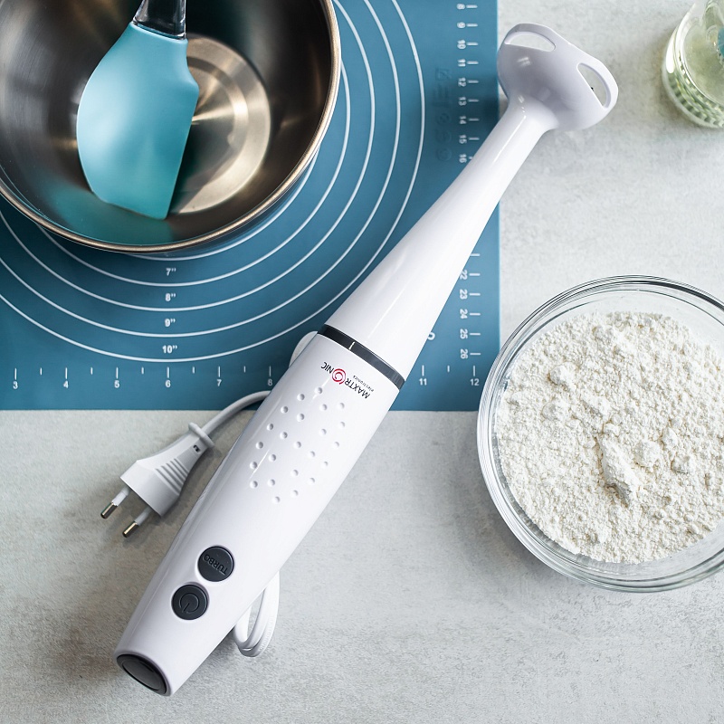 Надежный и удобный блендер поможет вам готовить ваши любимые блюда с минимальными затратами времени. Благодаря компактным размерам и простой конструкции блендер всегда будет под рукой и готов к работе. Идеально подходит для измельчения мяса, сыра, овощей, фруктов и трав, а также для взбивания сливок, соусов и смузи. В комплект входят: моторный блок с корпусом из белого пластика с серыми вставками, пластиковая погружная часть с двойными ножами из нержавеющей стали.