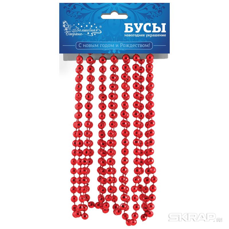 Елочное украшение БУСЫ Блеск 2,7м красный 104077 (144/1)