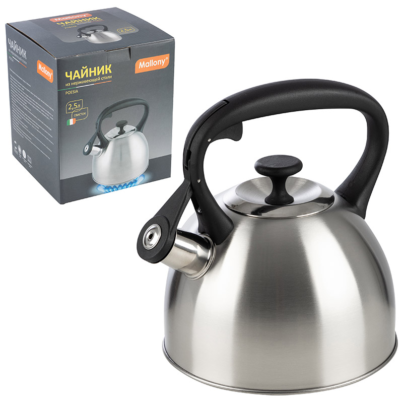Чайник POESIA объём 2,5 л из нержавеющей стали со свистком, матовый