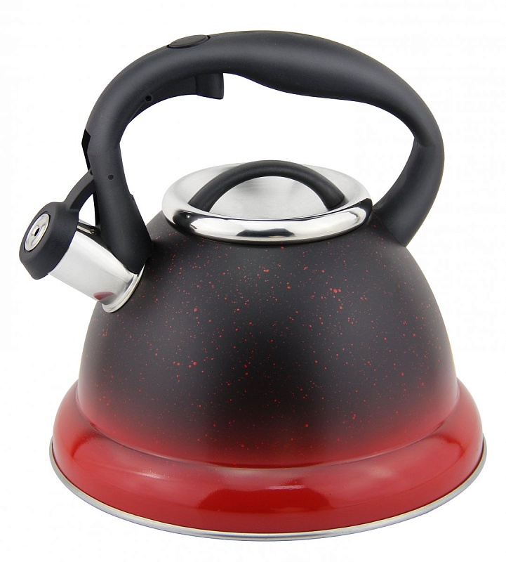Чайник со свистком, 2,5л. Модель выполнена по специальной пресс-форме с толщиной боковых стенок 0,4мм. Трехслойное дно, выполненное по технологии капсулирования, не деформируется и служит для равномерного распределения тепла. Ненагревающаяся нейлоновая ручка с кнопкой для открывания носика. Безопасный и громкий свисток вовремя проинформирует, что вода закипела. Высокопрочное покрытие чайника сохраняет отличный внешний вид изделия намного дольше. Подходит для всех типов нагревательных поверхностей. Материал нержавеющая сталь.