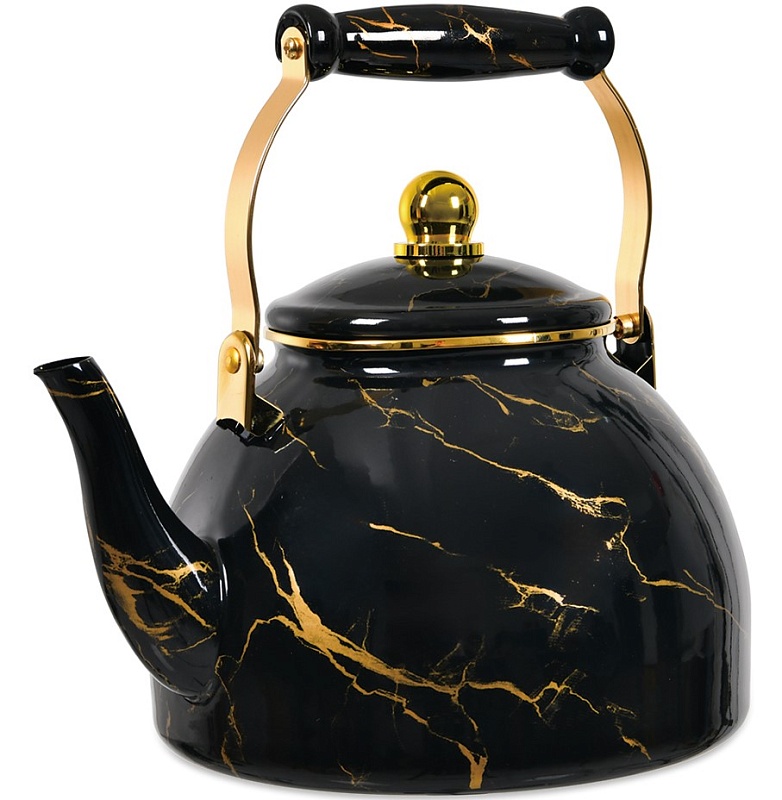 Чайник 4,0 л, эмалированная сталь, комбинированная ручка "под золото", внутреннее эмалированное покрытие, наружное покрытие - эмаль с рисунком. Подходит для индукции. Подарочная упаковка.
