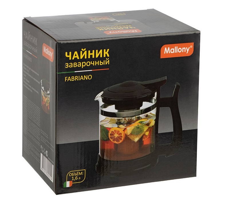 Чайник заварочный, Fabriano, объем 1,6 л, стеклянный, ручка/крышка/дно из полипропилена, чёрный