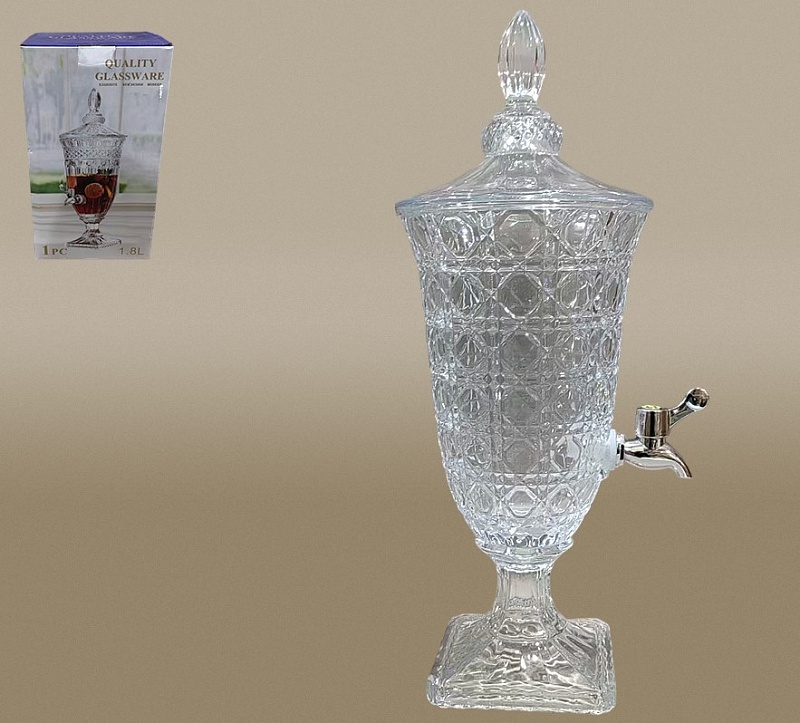 Утонченный диспенсер (из стекла с металлическим краном) позволит вам не только оригинально подать любимые напитки, но и придаст утонченности и разнообразия интерьеру вашей кухни или барной зоны. Дозатор для напитков станет отличным подарком для любителей роскоши и стиля, а также всем тем, кто любит домашний лимонад, фруктовый пунш, соки, чай, компот, слабоалкогольные коктейли, глинтвейн, грог и любые другие теплые или охлажденные напитки.