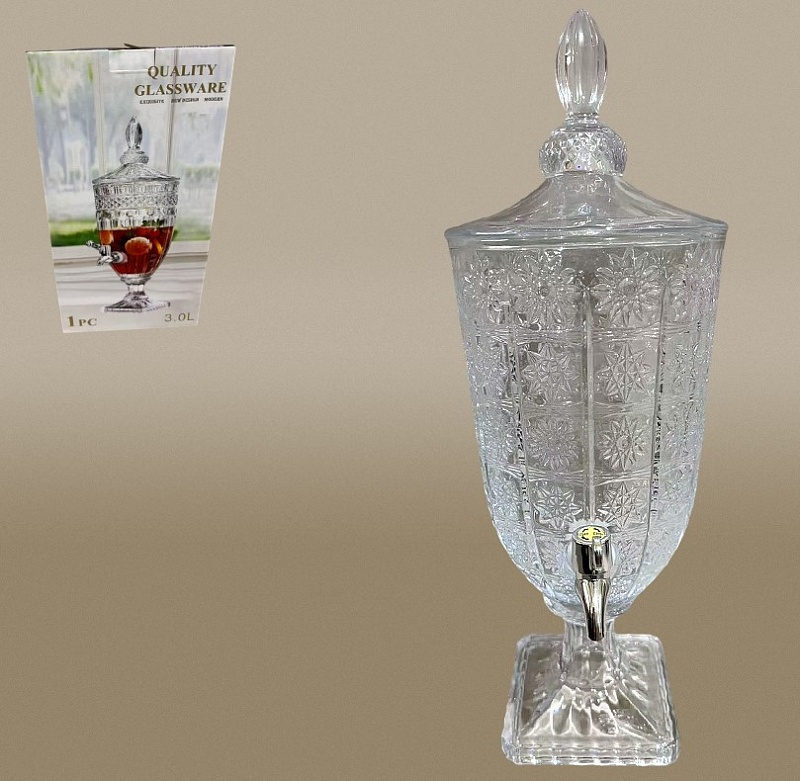 Утонченный диспенсер (из стекла с металлическим краном) позволит вам не только оригинально подать любимые напитки, но и придаст утонченности и разнообразия интерьеру вашей кухни или барной зоны. Дозатор для напитков станет отличным подарком для любителей роскоши и стиля, а также всем тем, кто любит домашний лимонад, фруктовый пунш, соки, чай, компот, слабоалкогольные коктейли, глинтвейн, грог и любые другие теплые или охлажденные напитки.