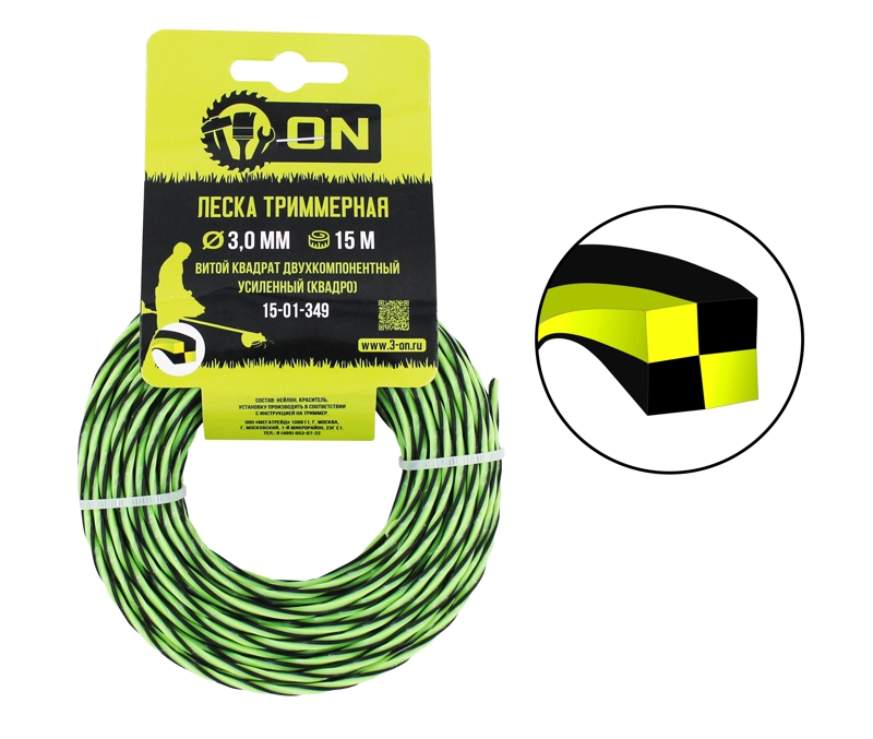 ON Леска триммерная «Витой квадрат» (двухкомпонентная, усиленная) 3мм х 15м 15-01-349 (160/1)Артикул: 119419Нет в наличии171 ₽