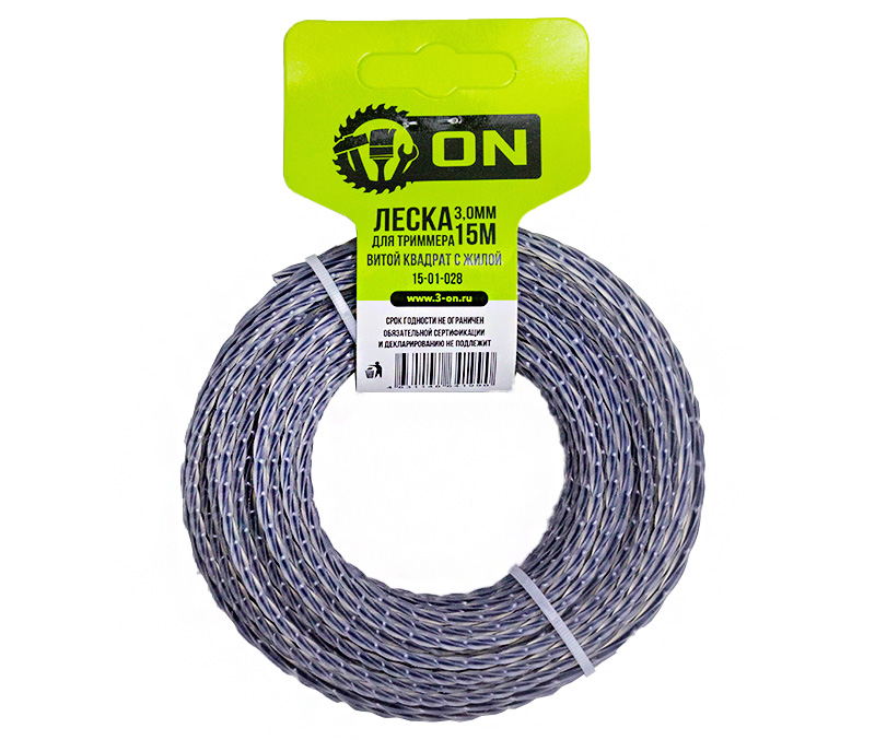 ON Леска триммерная «Витой квадрат» с жилой (двухкомпонентная, усиленная) 3мм х 15м 15-01-028 (100/1)