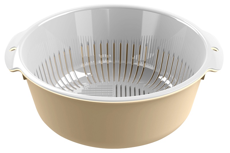 Ручки дуршлага спроектированы немного длиннее, чем ручки миски, поэтому дуршлаг очень удобно поднимать из миски. Миска и дуршлаг идеально вставляются друг в друга и компактно хранятся в ящике или же подвешиваются на крючок за специальное отверстие на ручке. Качественный полипропилен не содержит бисфенола А, переносит высокие температуры и подходит для посудомоечных машин.