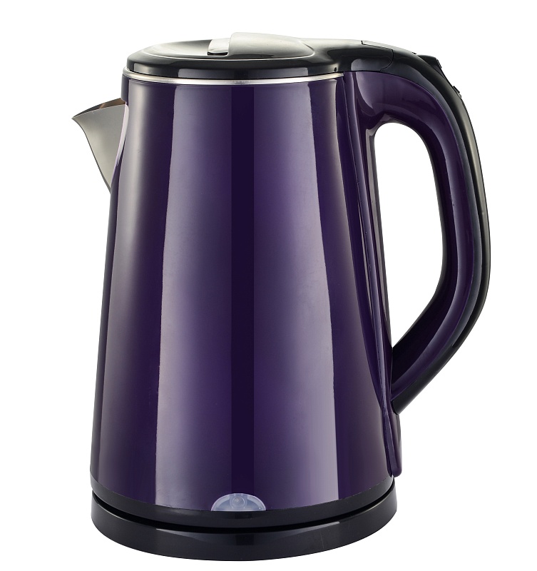 Корпус чайника, выполненный в современном дизайне, имеет двойные стенки: пластик темно-фиолетового цвета снаружи и нержавеющая сталь внутри. Благодаря мощности 1800 Вт позволит быстро вскипятить до 2 л воды. Скрытый нагревательный элемент чайника позволит при необходимости легко отмыть корпус изнутри от загрязнений и накипи. Имеет встроенную систему отключения при достижении водой температуры 100 градусов, о чем оповестит световой индикатор. Благодаря свободному вращению на подставке прибор удобно брать и ставить на место любой рукой.