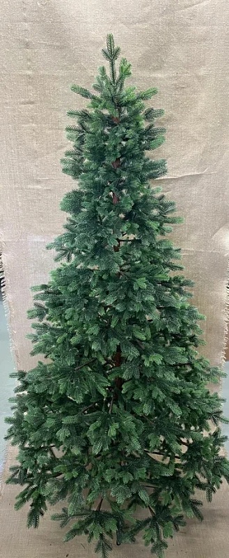 Ель «Уральская» высотой 180 сантиметров зеленого цвета на металлической опоре. Ее иголки изготовлены из 100%-го литого пластика (РЕ). Диаметр нижнего ряда 97 см. Количество веток — 550. Выглядит как натуральная елка благодаря большому количеству индивидуально отлитых веточек. Ствольная конструкция состоит из 2-х частей, веточки все цельные из отожженной проволоки. Срок службы от 8 лет. Не имеет запаха и не горючая. Упакована в прочную коробку из картона, в которой можно хранить елку между праздниками.