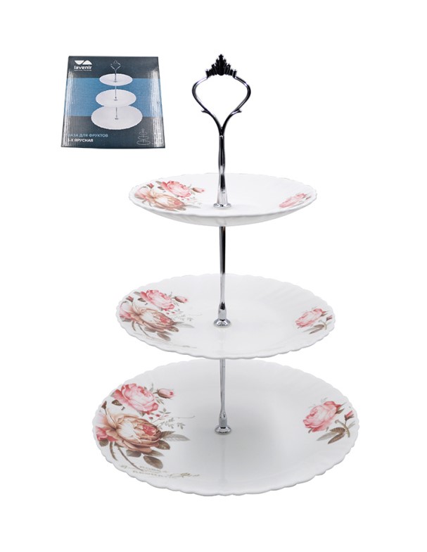 Ваза для фруктов 3-х ярусная Lavenir "Чайные розы" 15/19/24 см LXP3AT YF20032 (6/1)