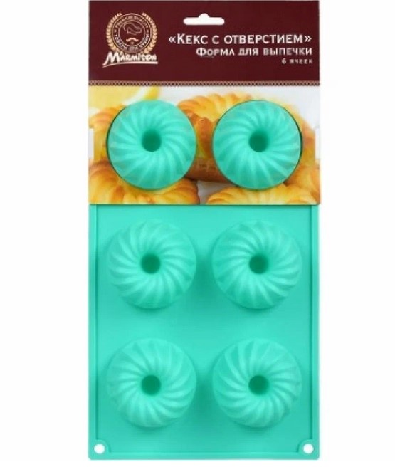 Форма силиконовая Кексы с отверстием 6 ячеек 29,5*17*3,5 см цвет в ассортименте MARMITON 16024 (20/1)Артикул: 124055В наличии138 ₽