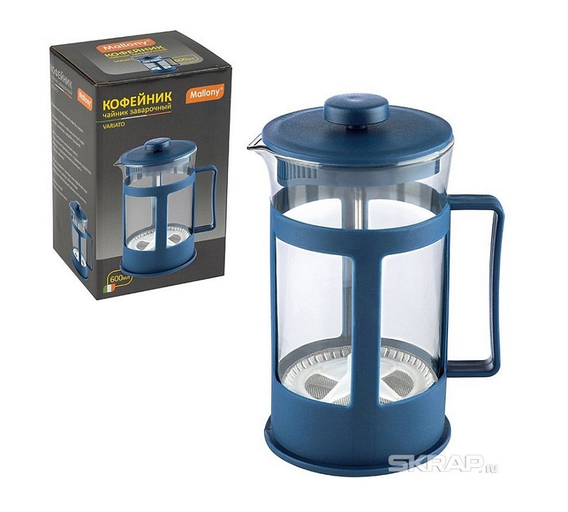 Чайник/кофейник кофе-пресс VARIATO 600 мл из жаропрочного стекла в пласт корпусе цвет-синий 950077 (24/1)