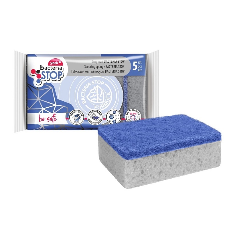 Губки для посуды антибактериальные YORK БАКТЕРИЯ СТОП 5шт. 034040 (20/1)