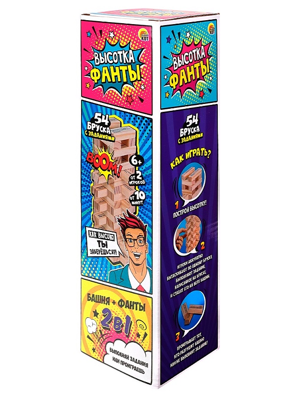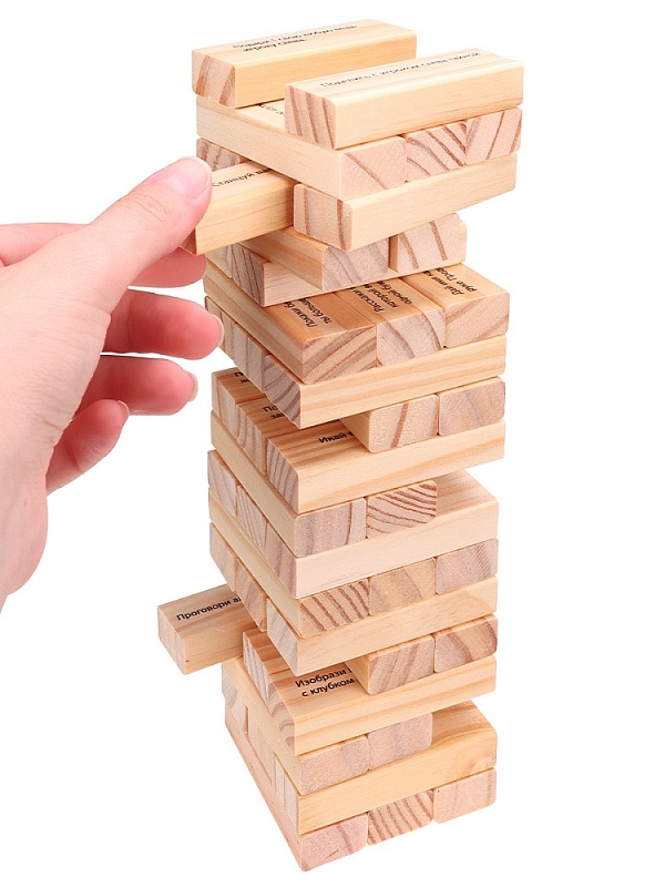 2. по очереди вытаскивать бруски, вывполнять задания, написанные на них, а затем ставить бруски на верх башни