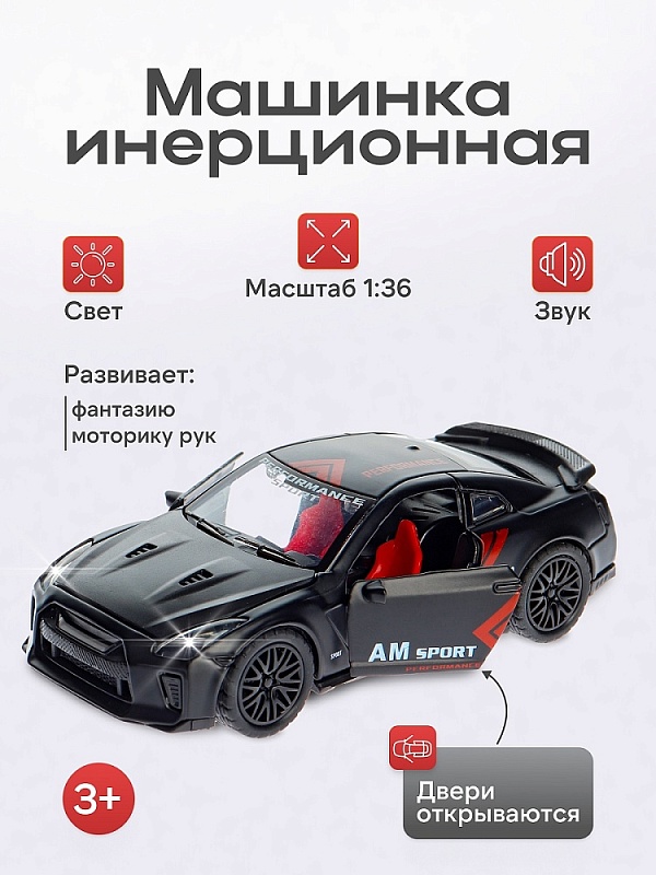 Металлическая машинка порадует ребенка детальным исполнением и ярким дизайном. Играя с ней, ребенок сможет придумать интересные и захватывающие игры и сюжеты, развивая фантазию и мелкую моторику рук. Рекомендовано детям от 3-х лет. Размер: 12,2х5,2х3,6 см. Масштаб: 1:36. Особенности: с открывающимися дверями, светом, звуком. В ассортименте: цвет микс. В коробке.