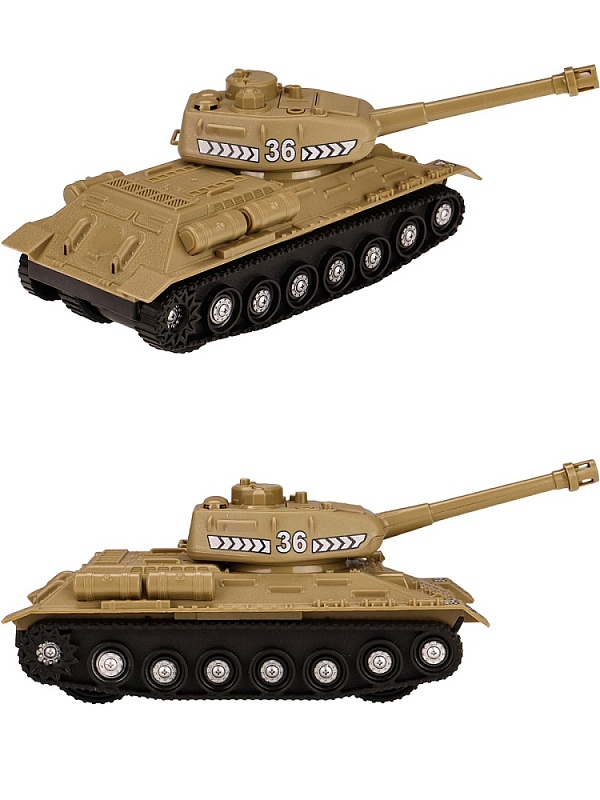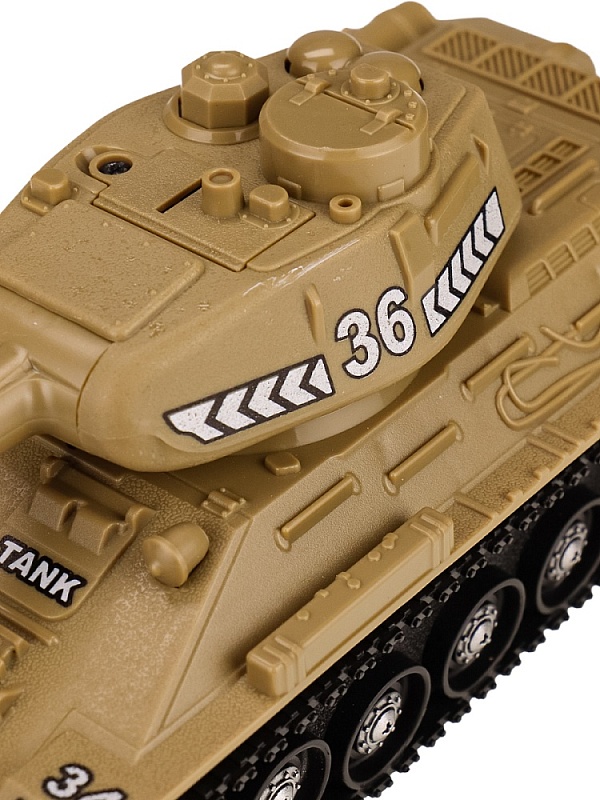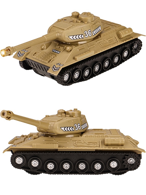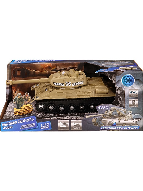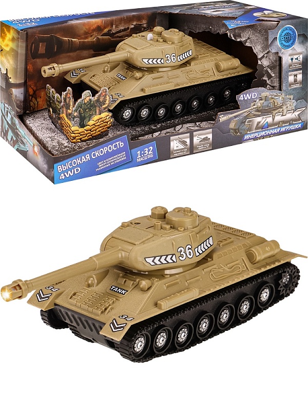 Танк понравится любому мальчишке! Он непременно порадует ребенка своей скоростью и маневренностью. Такая игрушка способствует развитию познавательного мышления, моторики, координации движений, внимания и ловкости. Есть возможность подъёма по наклонной поверхности под углом 45 градусов. На стволе пушки мигает световая лампа. Башню можно вручную поворачивать на любой угол. Ствол пушки можно вручную поднимать и опускать на 15 градусов. Издаёт звуки двигателя и выстрелов. Инерционный танк предназначен для сюжетно-ролевых игр, способствует развитию познавательного мышления, моторики, координации движений, внимания и ловкости.