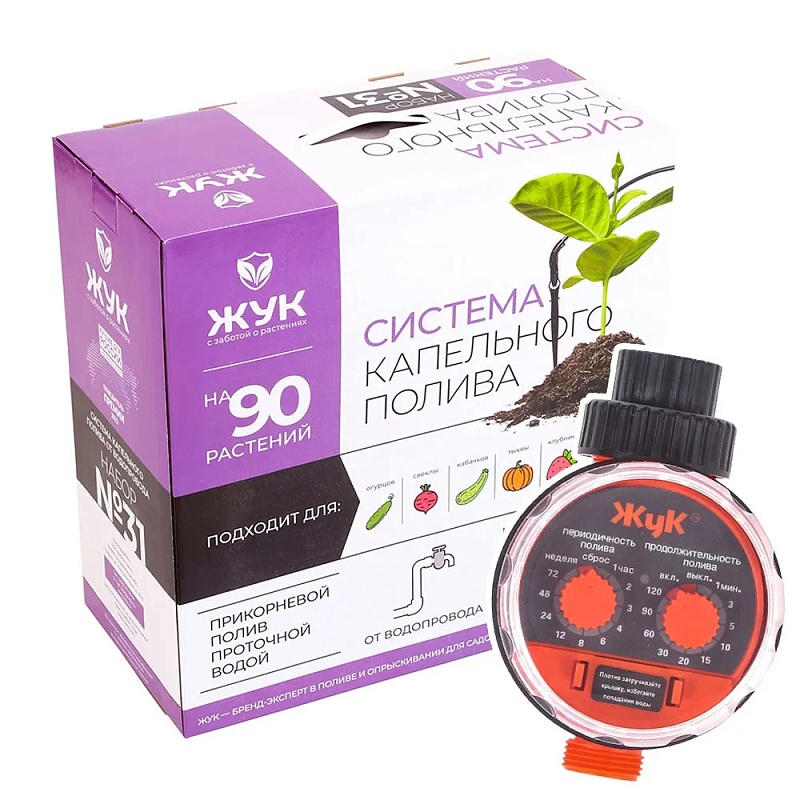Капельный полив «Жук» от водопровода с таймером на 90 растений (3/1) Ковров