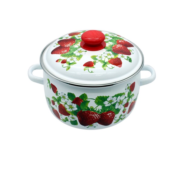 Кастрюля сферическая 4 л с ободком белая Клубничная поляна 3MC201P (4)