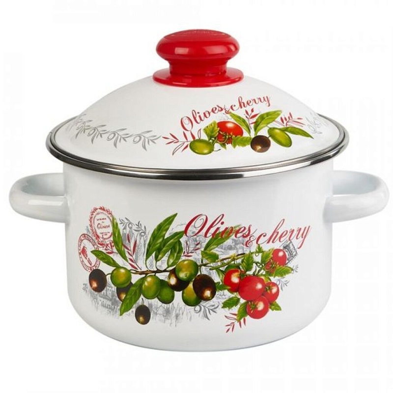 Кастрюля цил 4 л с ободком, белая, Оливки и черри 3MD201М (4)