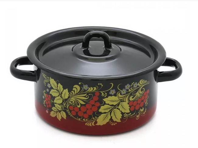 Кастрюля цилиндрическая 2 л декор красно-чёрная с петлей С1610.8 (8/1)