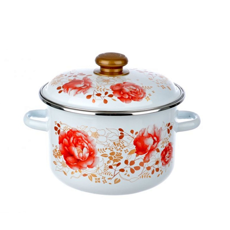 Кастрюля цилиндрическая 2 л с ободком белая Пионы 3MD161P (8)